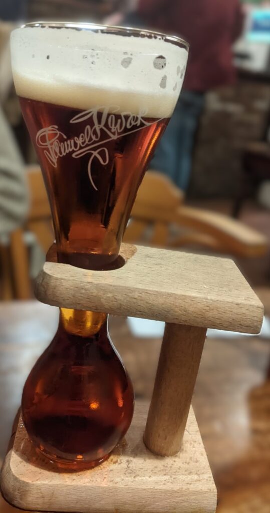 In one corner of the bar, was a beer tour going on, to which I ear-wigged intently. It was rather interesting and entertaining and they were trying a Kwak. I also bought myself a Kwak from the bar here, but unfortunately the notes I wrote about it got lost. Soz guys. Love the glass though, it’s a real fun experience and something unique.