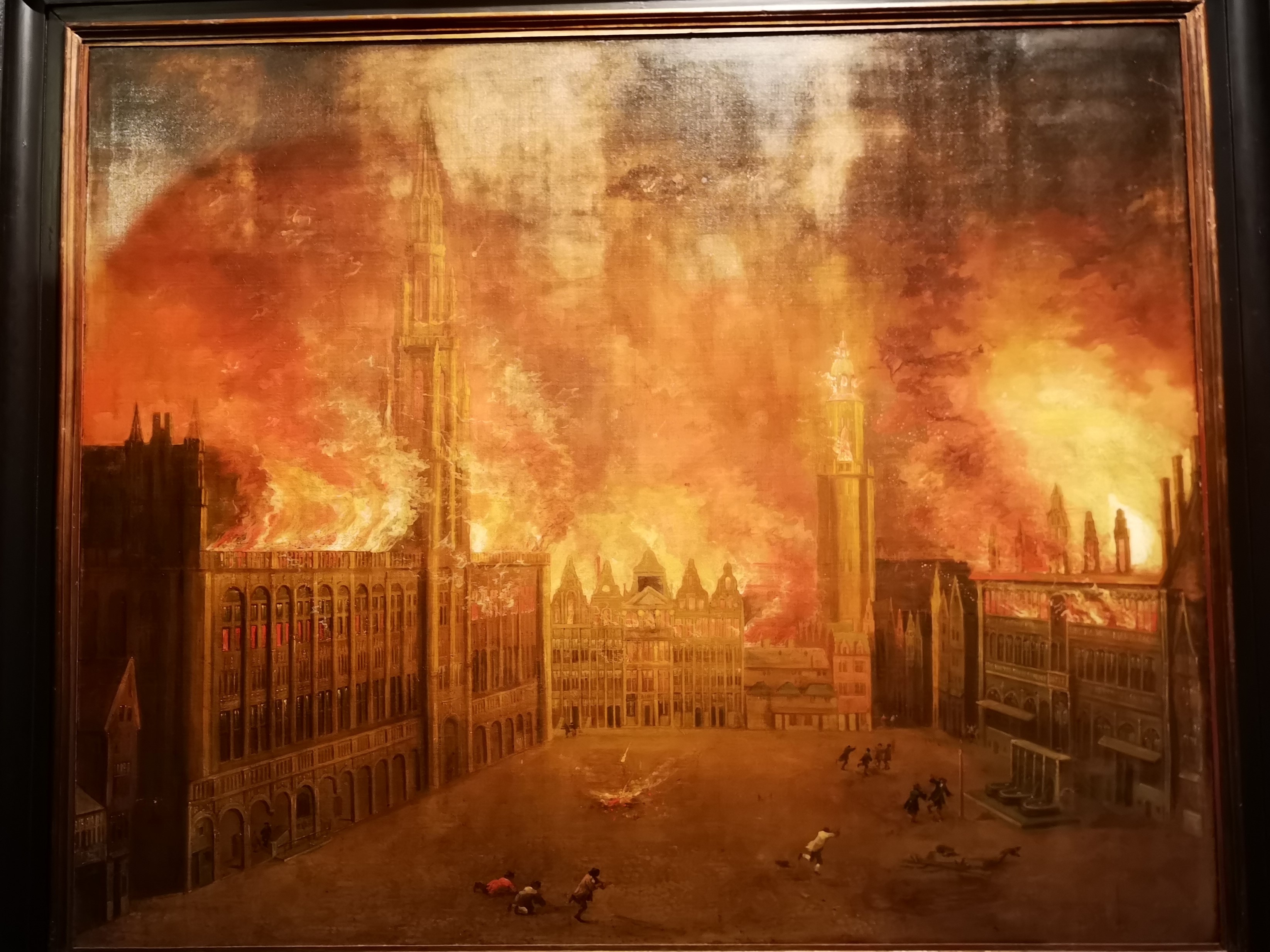 This second painting, on the right, grim it may be, was painted within 6 months of the fire itself. You get many historical events that have been painted perhaps 200, 300, 1469 years after taking place. Even portraits of people can often be created decades or centuries after their passing. But this Anonymous, wonderful son of a gun painted their impression of the terrible events of 13th-14th August, 1695, very shortly afterwards in 1695.