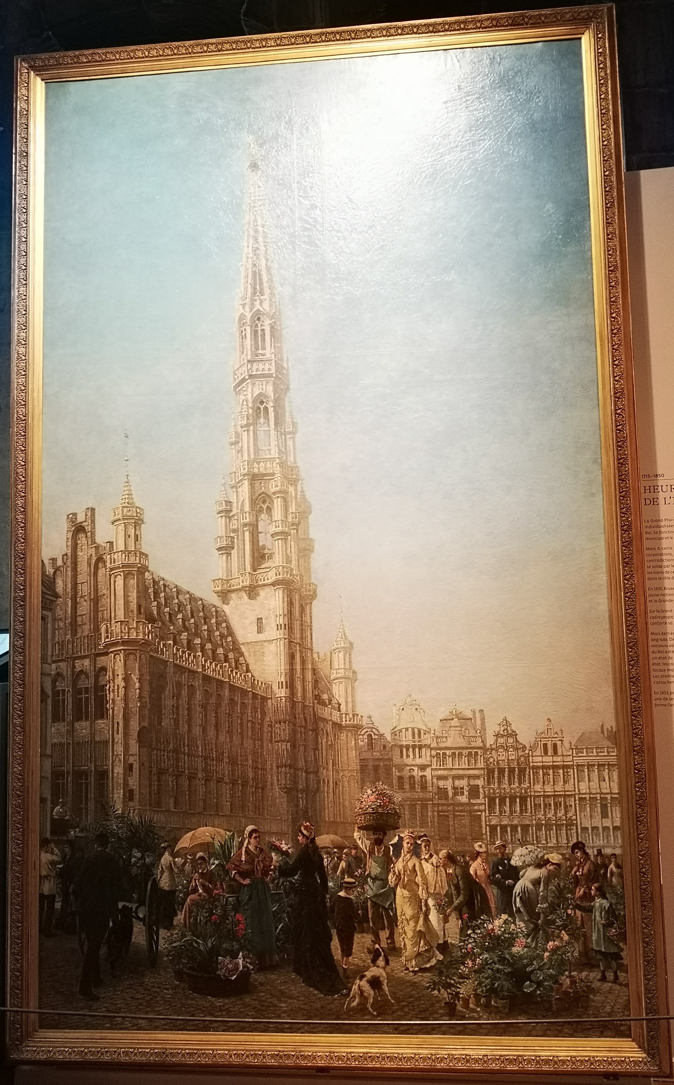 Forgive me for rabbiting on, but I wanted to highlight my favourite two paintings in the museum. This first, on the left, is aptly called: The Town Hall and the Sunday Market and was painted in 1887. I like this painting as it is so realistic, I feel I could jump right into it. It helps that not too much has changed with the architecture and building placement in today’s Grand Place, and I feel it is almost like a photograph of history right there. We saw a similar painting depicting a market in front of the Town Hall, yet I felt this one painted by Cornelis Dommershuizen, seems more real, and less fairy-tale. On balance, I also love a good, ornate frame.