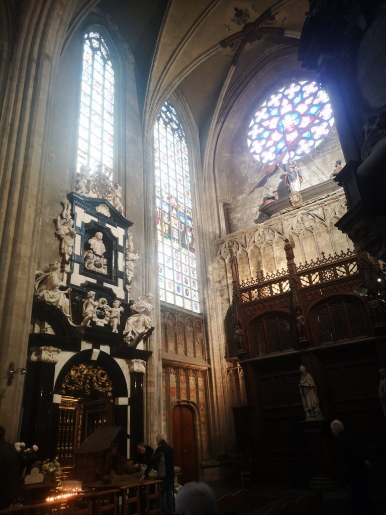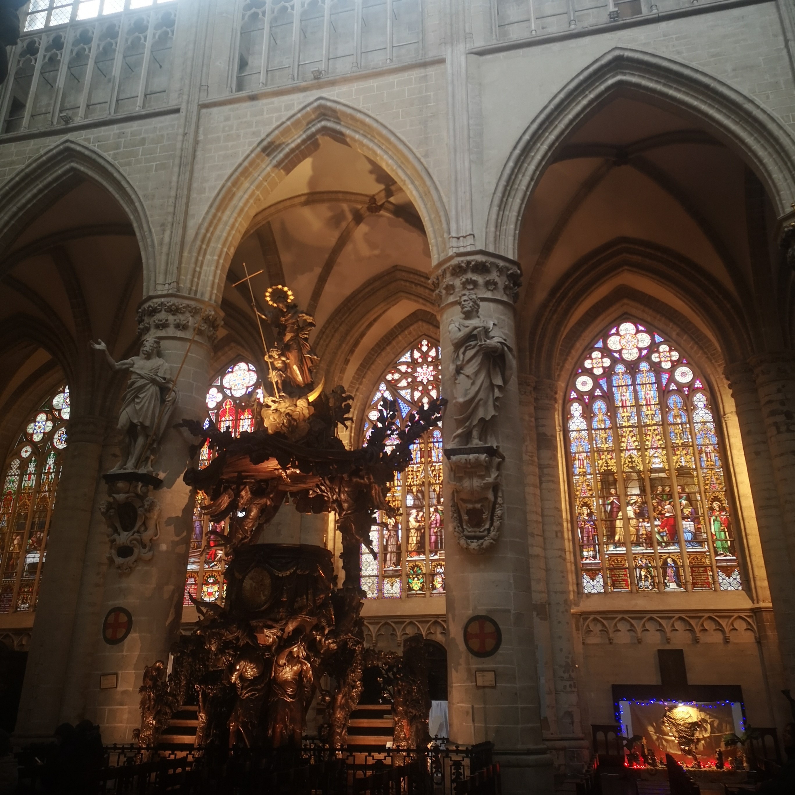 We had planned to visit this cathedral after the Museum of the National Bank of Belgium. However, the museum had changed addresses and so we actually passed the cathedral along the way. We spent ten minutes here from 15:20 to 15:30, after battling down streets of cobbles, to my utter delight. Cobbles are great to look at: very cultural and historical. But after days of walking, they are just ow.