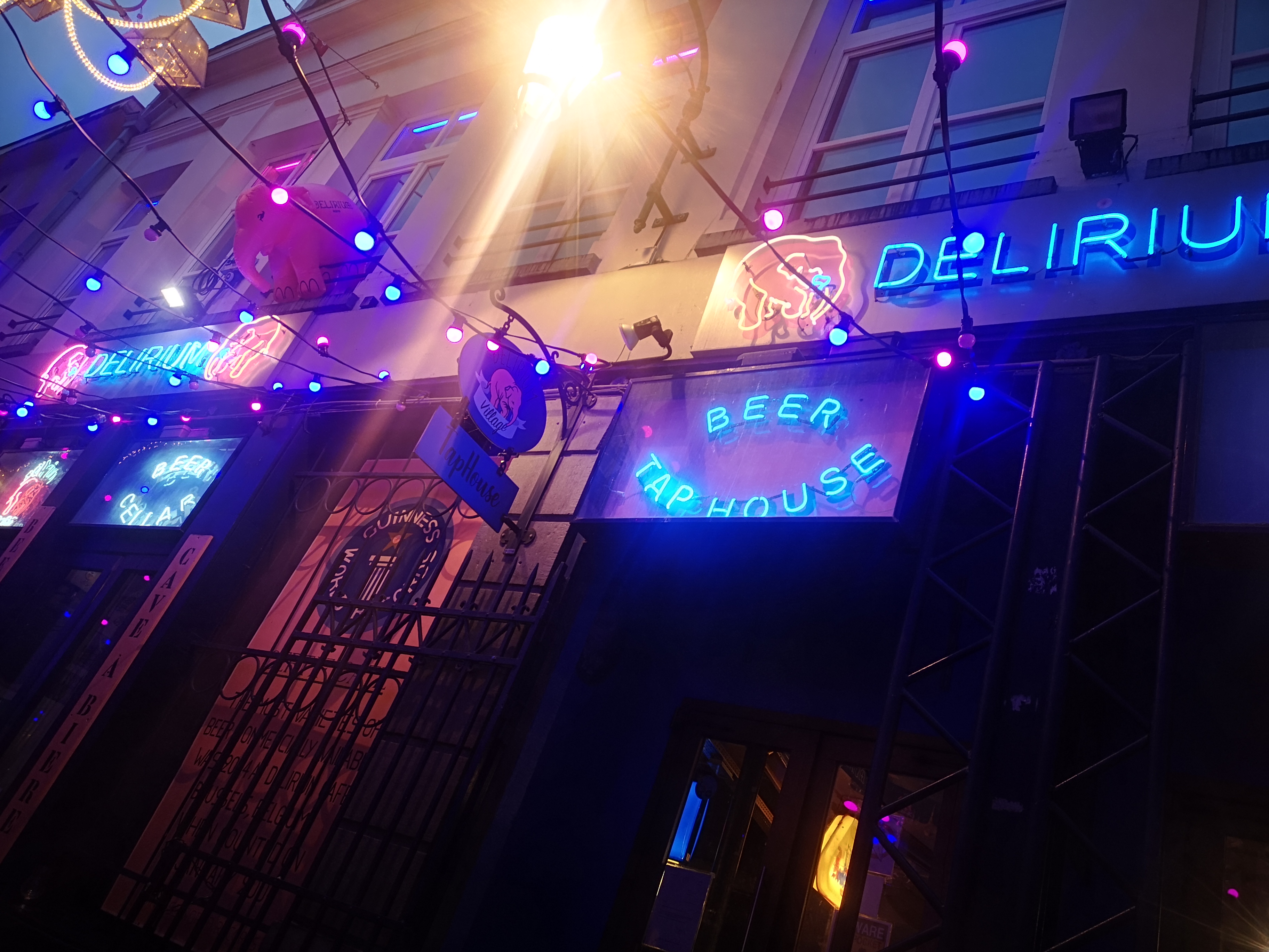 Strange colourful cards surround the wee lassie as she’s widdling. Not entirely sure what that’s about. Compared to the little boy weeing and the dog coking its leg, I felt more uncomfortable by seeing the statue of the little girl weeing. Maybe because I am a girl, and I understand the vulnerable position she is in? Perhaps because it’s more ‘shocking’ or unusual to see a little girl popping a squat, whereas everyone since the Ancient Greeks and beyond have carved male genitals and little boys peeing. Regardless, I wasn’t really a fan. Not one of Brussel’s highlights for me. Neverthless, it is opposite an ABSOLUTE Brussels’ highlight: the Delerium Café.