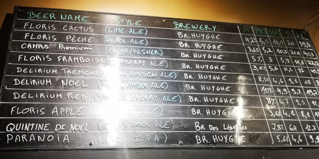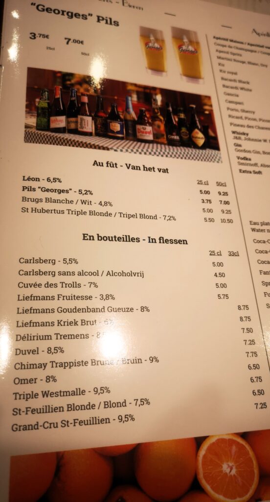 They only had maybe 5 different beers, and they were all in bottles. There were no draught beers. In Brussels. The ‘bar’ was more like a counter with a glass barrier and you ordered your bottle or spirit mix there and took back to the table. It was nothing like a normal bar. But maybe that’s another curiosity?