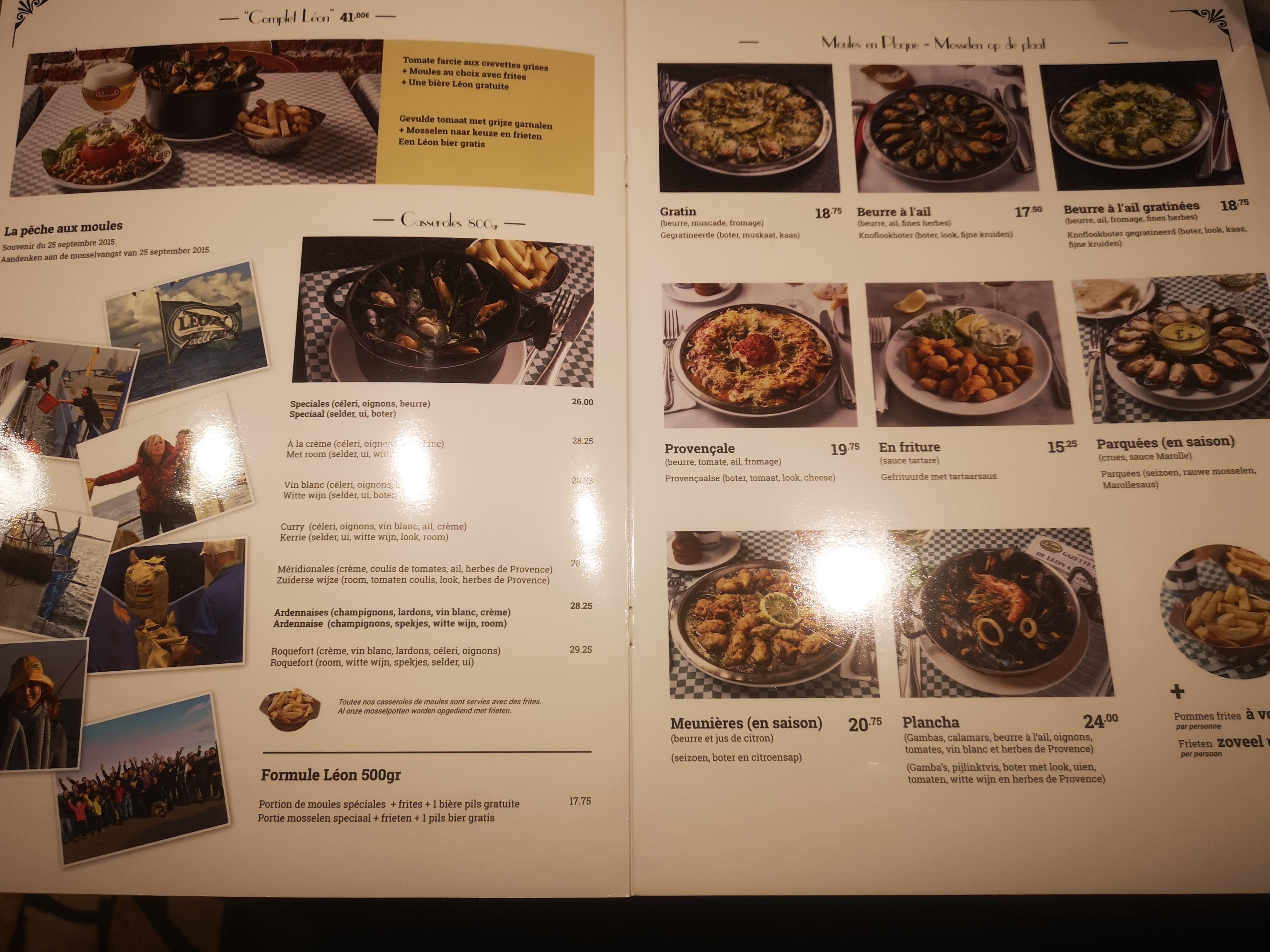 The Chez Leon Restaurant was huge, and totally mussel-centric. I love mussels, and I didn’t know before arriving that this was the case. It was a pleasant surprise, to say the least. My reason for choosing this restaurant was simply location combined with we got 15% off the bill with the Brussels card voucher. Important to save pennies where we can!