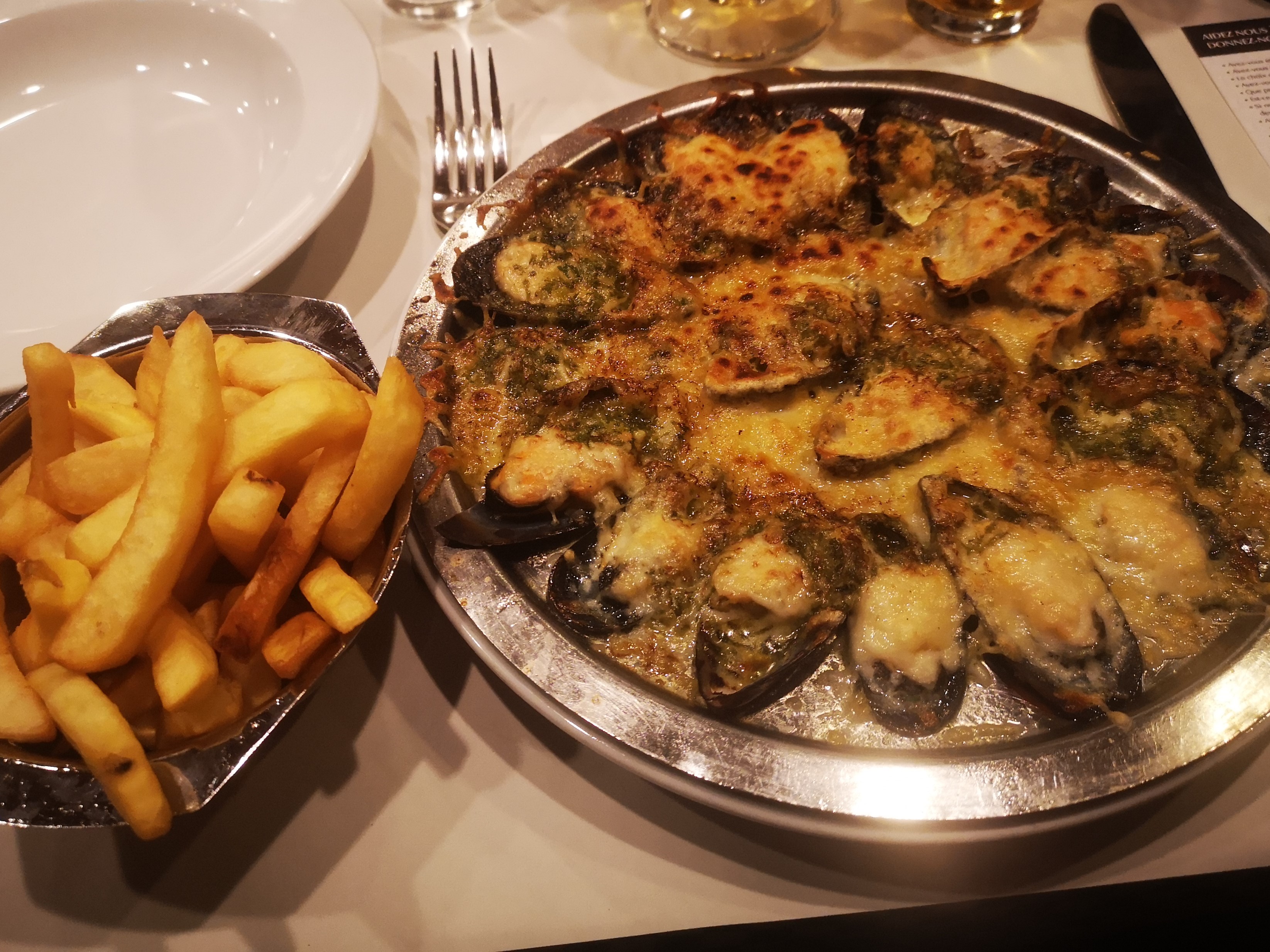 The food took a wee while to come out, and the service was fairly slow all round, but tasted absolutely amazing. I got the “Beurre à l’ail gratinées” Mussels option which consisted of mussels with butter, garlic, fine herbs and cheese baked in the oven. Divine. I got a side of chips too, although there wasn’t much sauce to dip it in as the baked cheese was hard and crispy as opposed to melted and gooey.