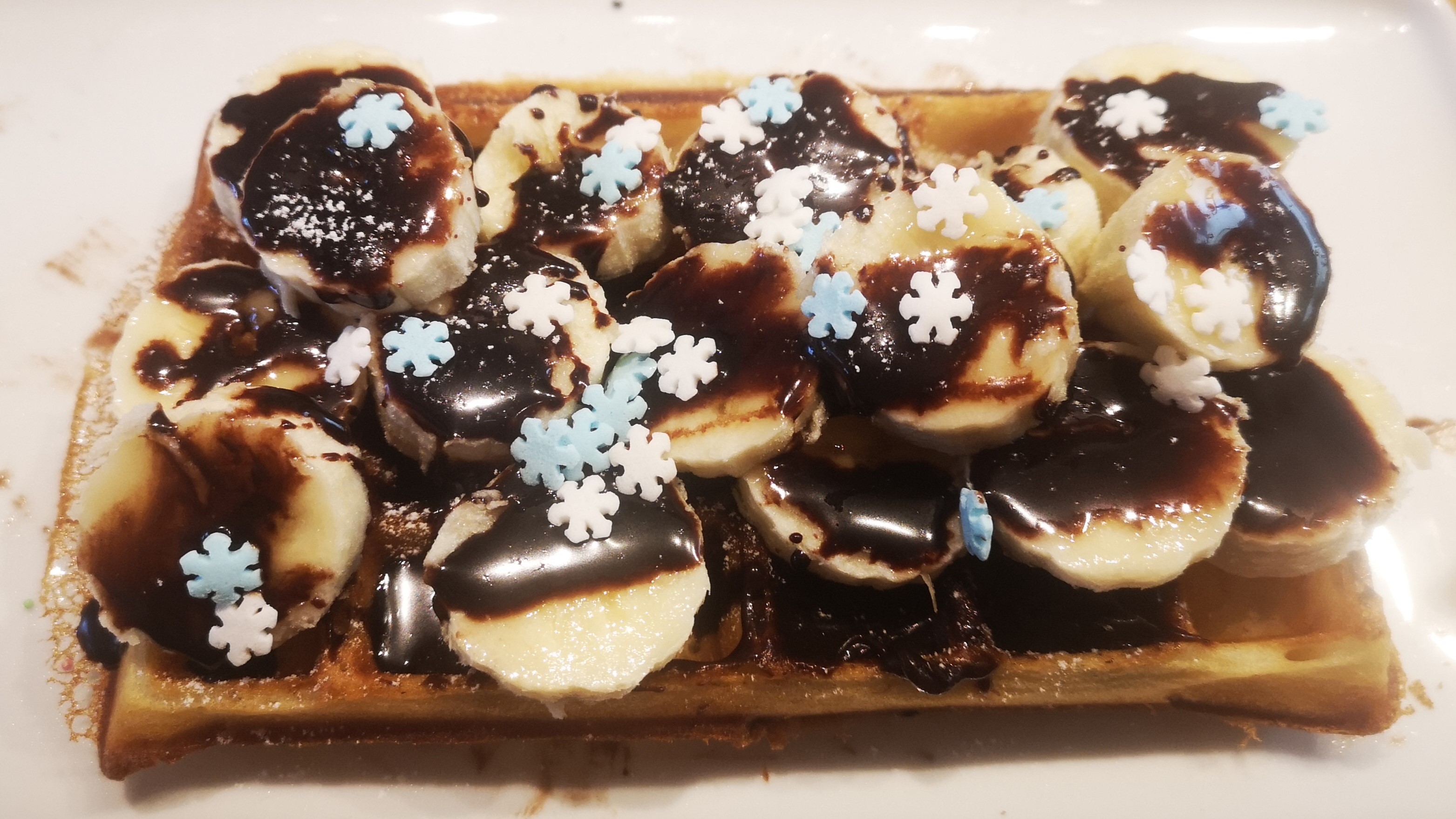 There were two staff members with us for our wacky waffle workshop. One was giving us the instruction on the food and the waffle irons and the other was generally just taking some cracking photos of the group and the waffles made for promotion purposes. We gave our permission for this. They were both lovely girls with cracking English, as well as Spanish. After cooking our waffles, we could decorate them with a range of sprinkles, sauces and a banana or two. As can be seen in the photos, I grabbed some Frozen sprinkles and chocolate sauce. We had time to eat them there along with a fruit juice of choice. I’d recommend this workshop as it was really fun, interactive and yummy!