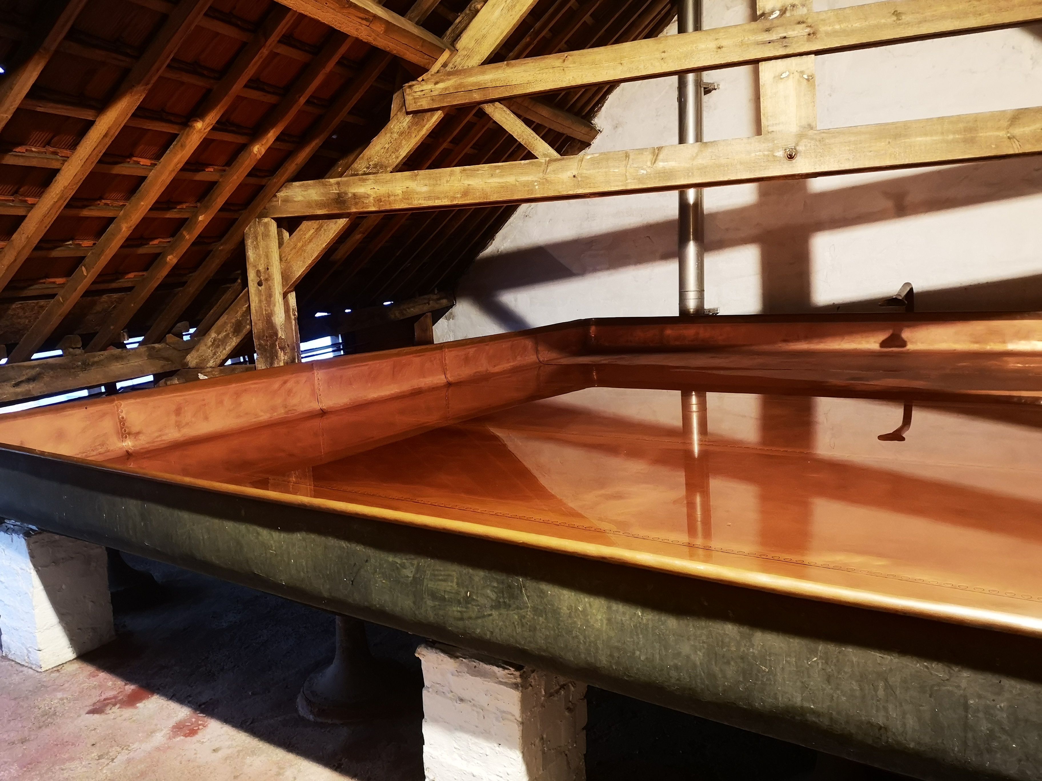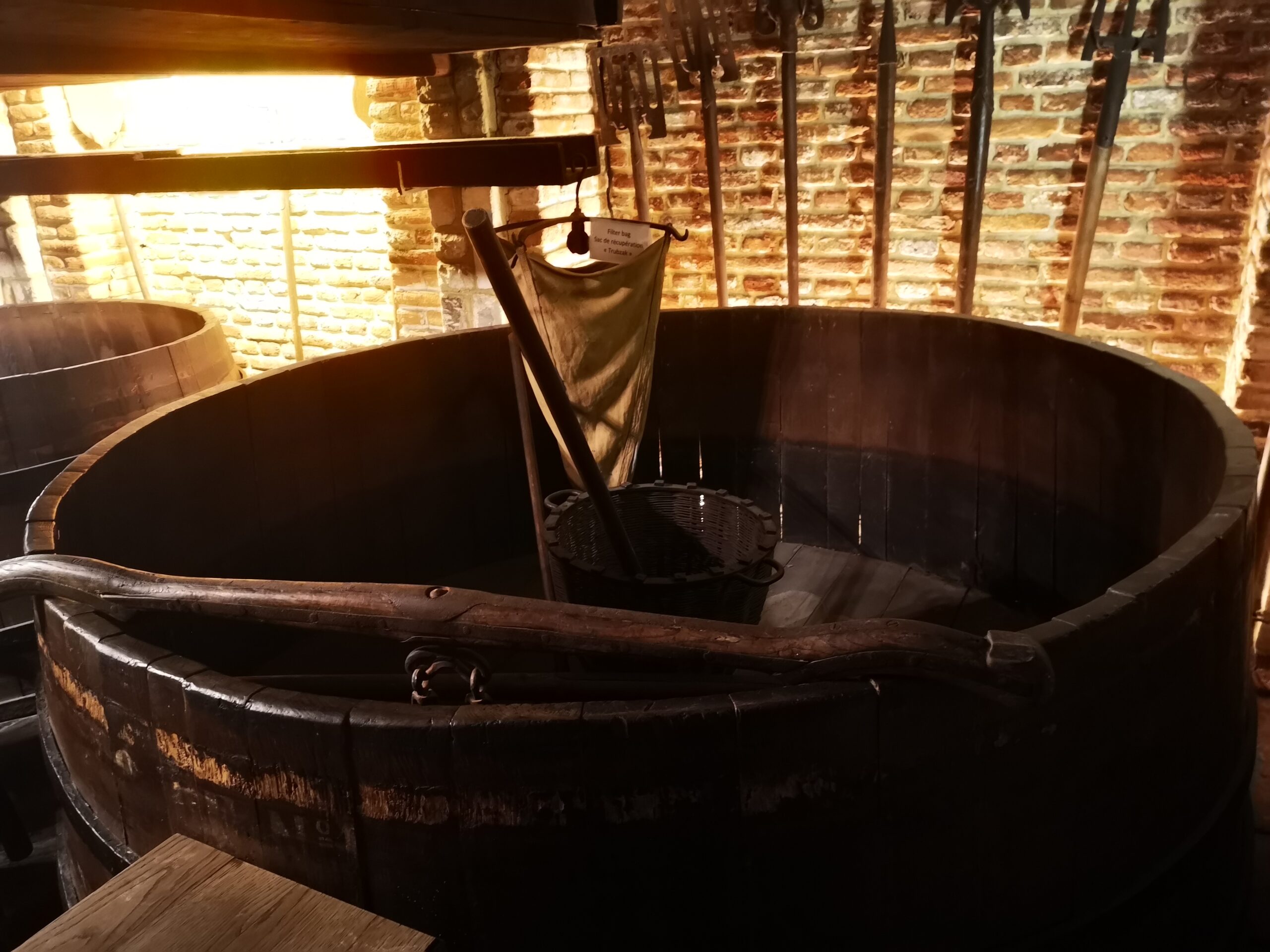 In the below photos you can see the old equipment and mechanisms they use. The far right image shows the large open vats they sit the liquid in to entice the wild and enthusiastic yeast to come and play.