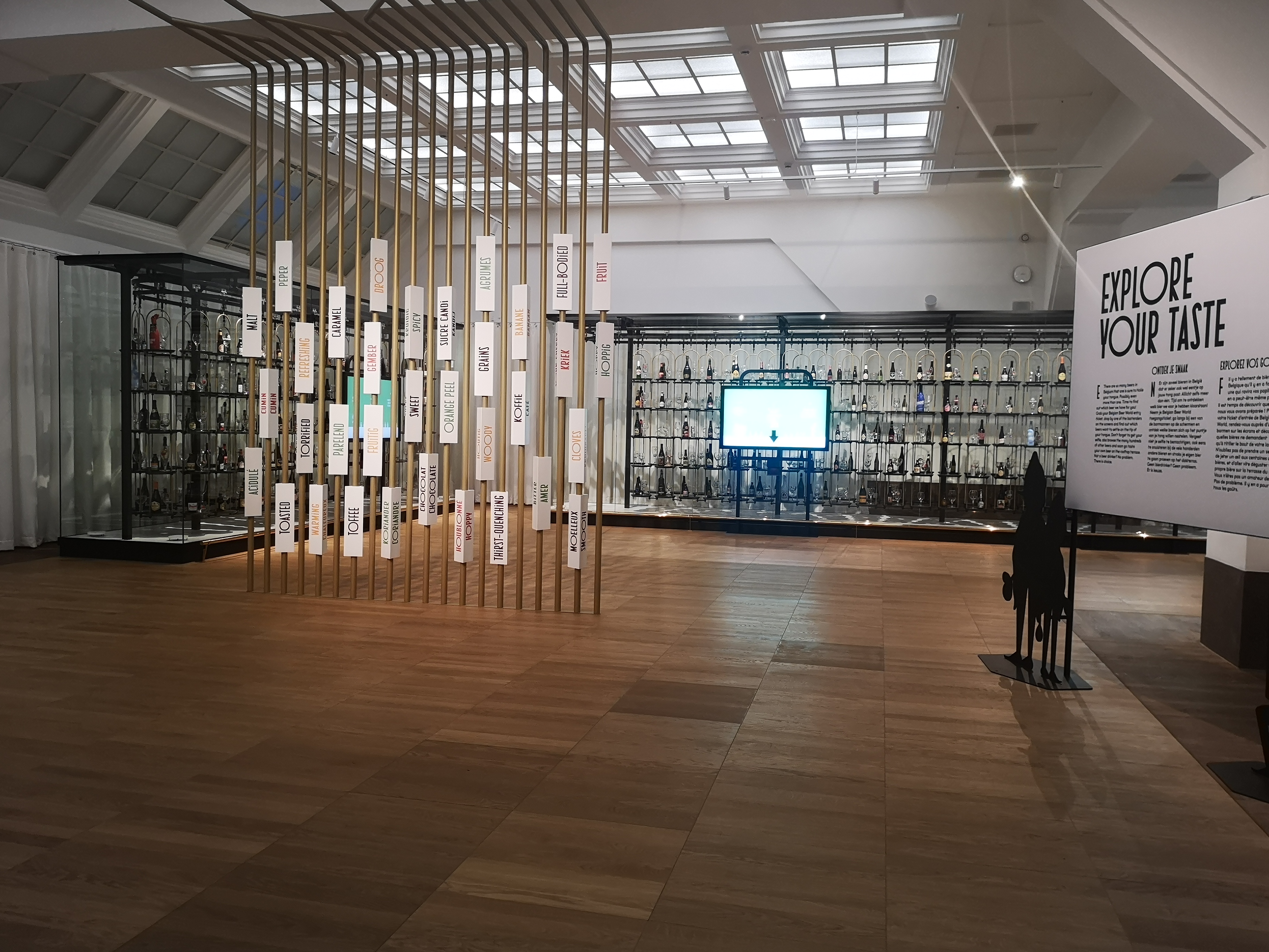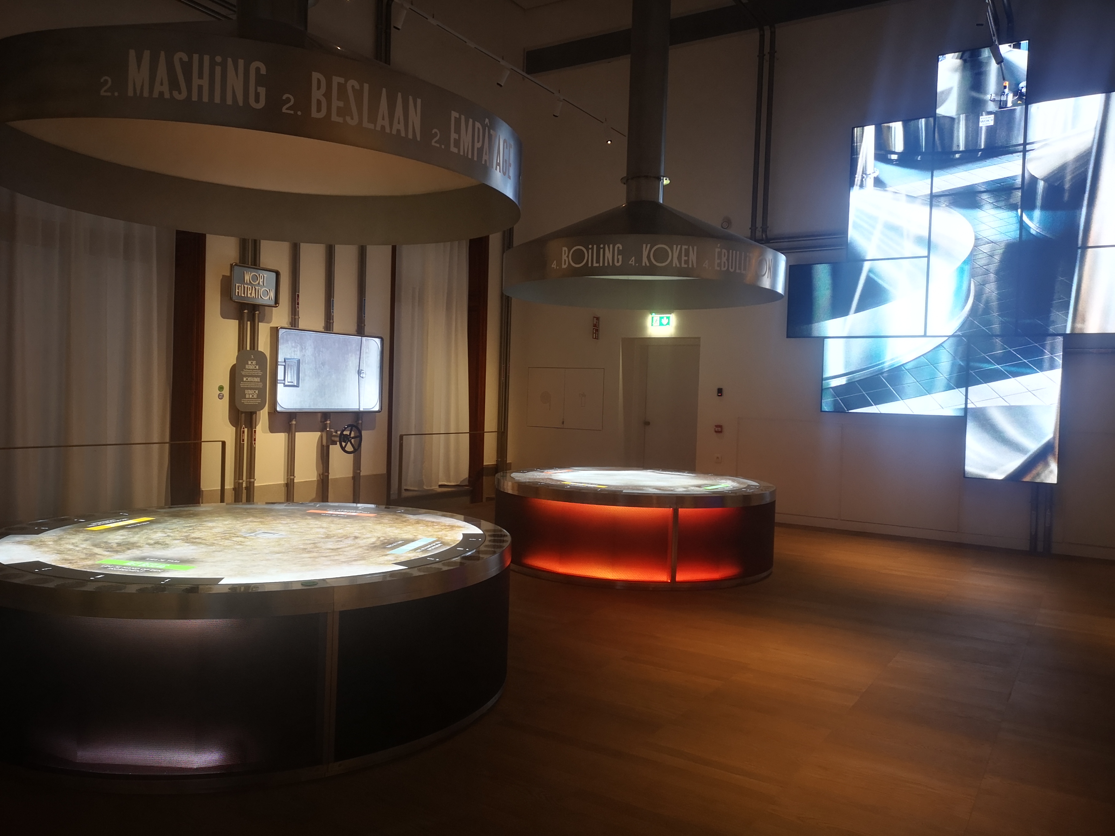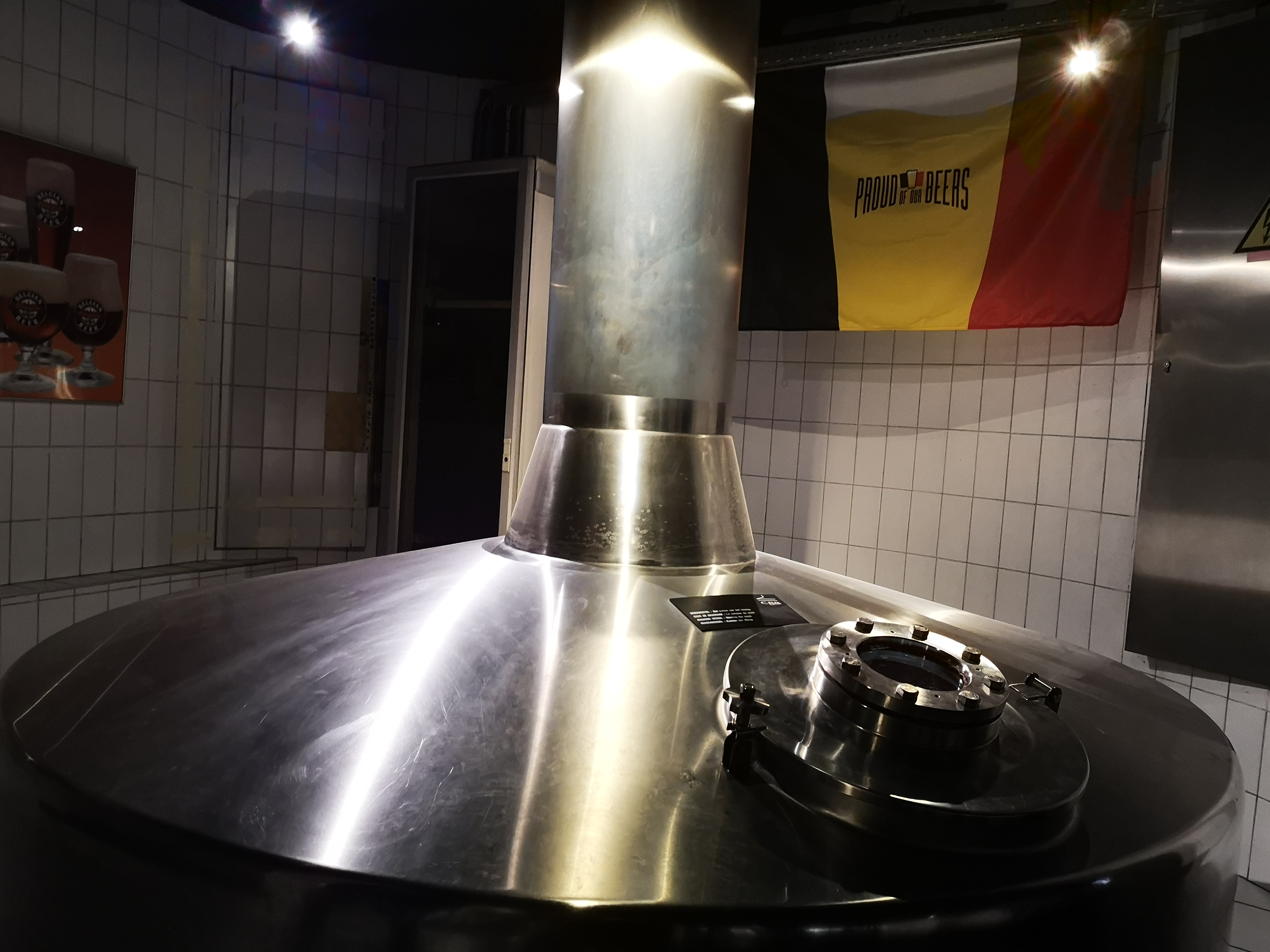 There are two main rooms, plus a teensy little bar. Firstly, you’re treated to the old-world brewing equipment from the 19th century with mash tuns and boiling kettles etc. It has that quaint historical appeal for sure. Going forwards through the doors at the end, you enter a modern, circular room with a screen and chairs in the centre and brewing equipment around the walls. The screen shows educational videos on Belgian beer and the company that runs it and brews. I found a strange abundance of mirrors in this room that made navigation difficult: it’s hard to explain but if you go, you’ll see what I mean.