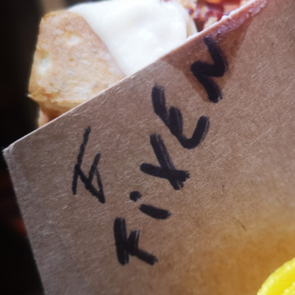 One thing that linked both my lunch and my dinner on this day, was the inability of the cooks to spell my name for the order. Check out these ridiculous efforts to spell my name: Vixon.