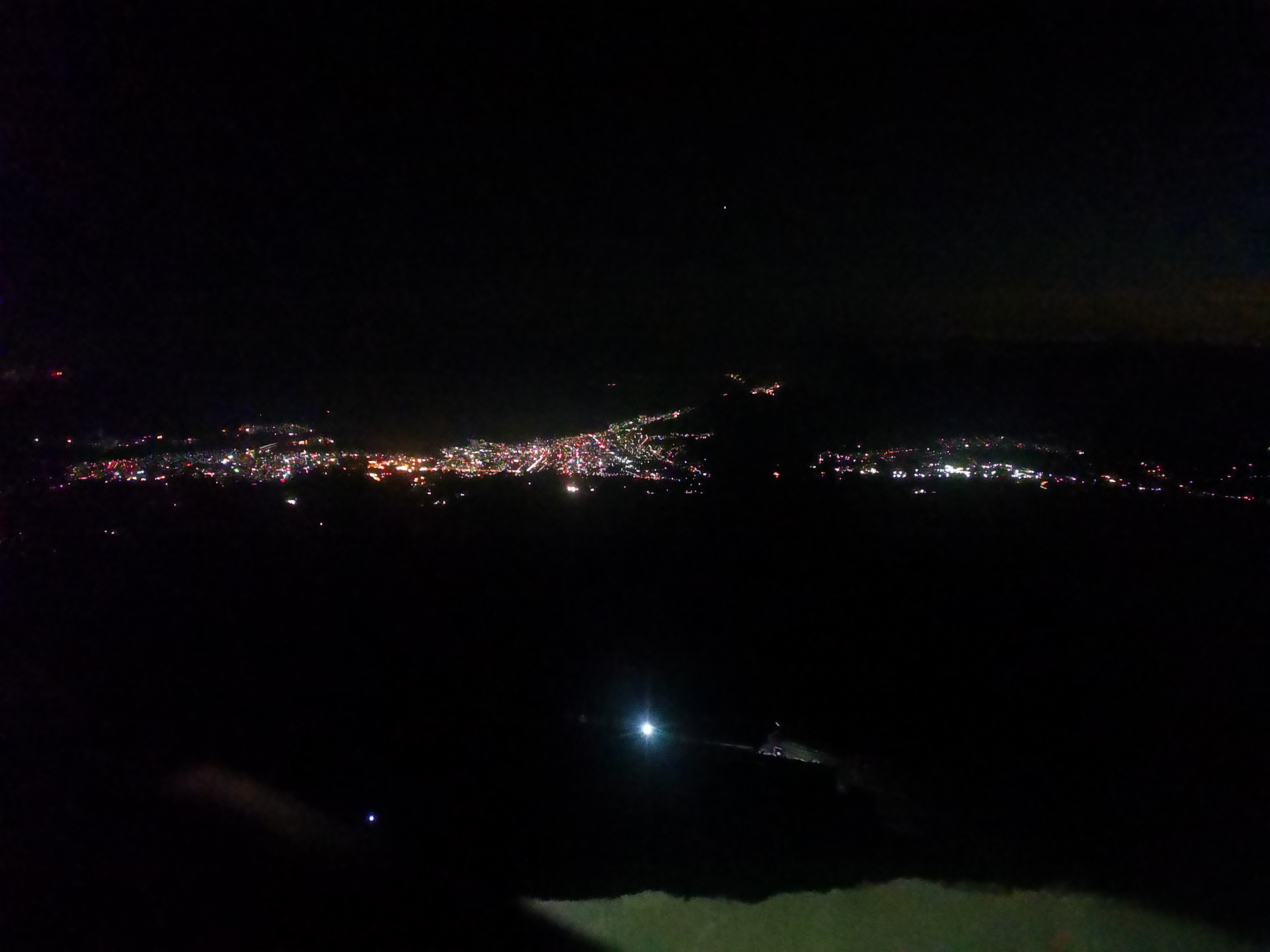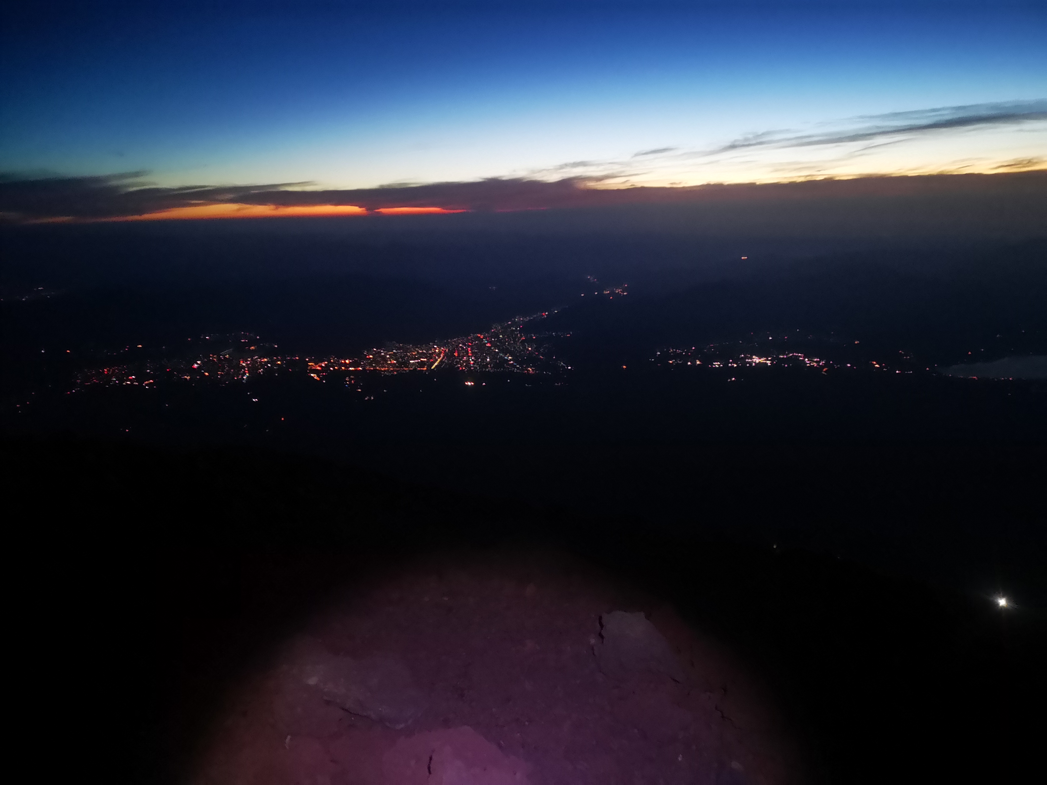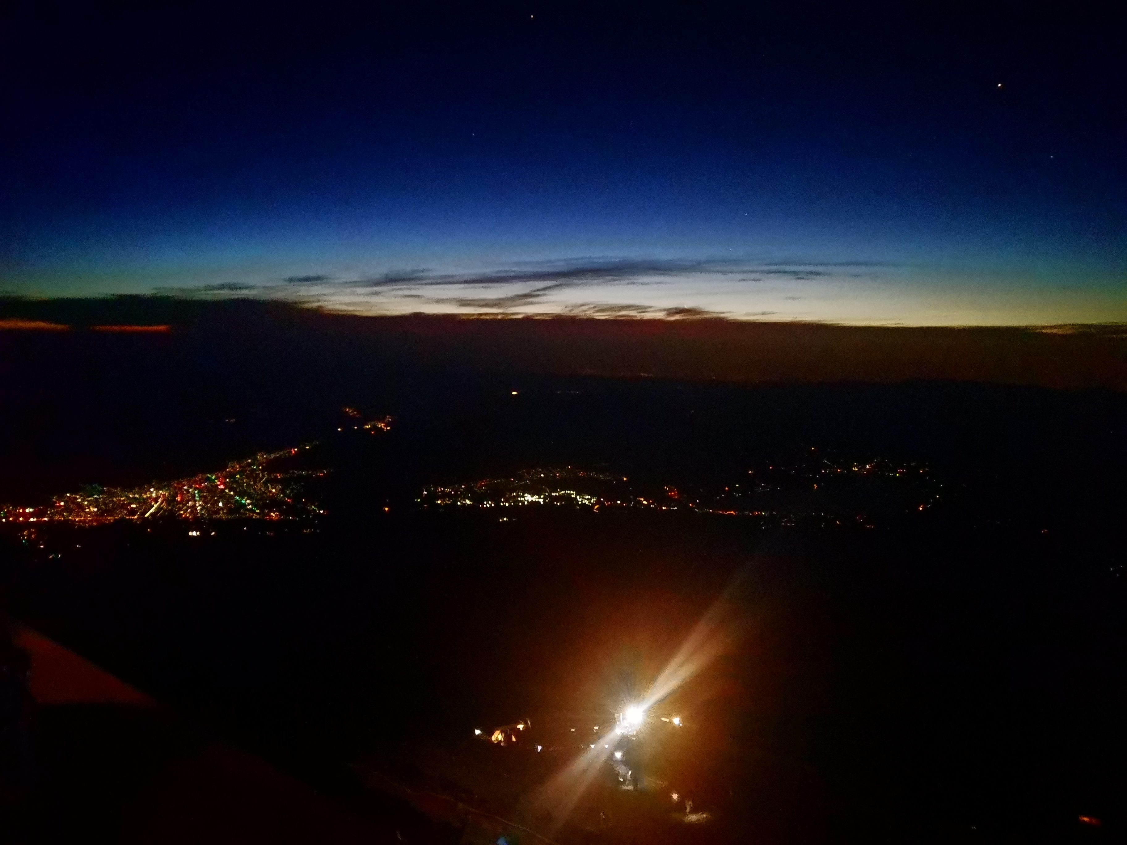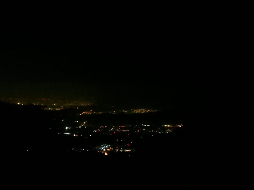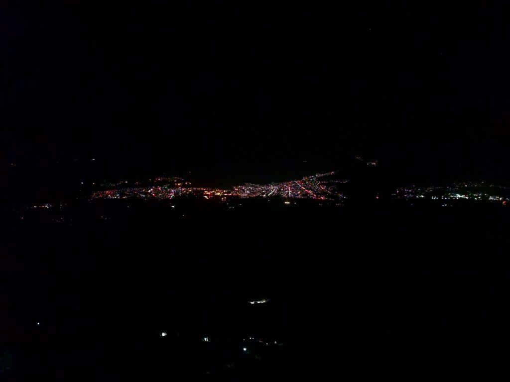 Your view at this point is a few lights in the distance, as if you’re on a plane. It’s cool, but with the strain of the unknown, dark climb, you don’t have time to marvel. You’re glad you’re not alone as you trudge up the walkable parts, with the rest of the silly people.