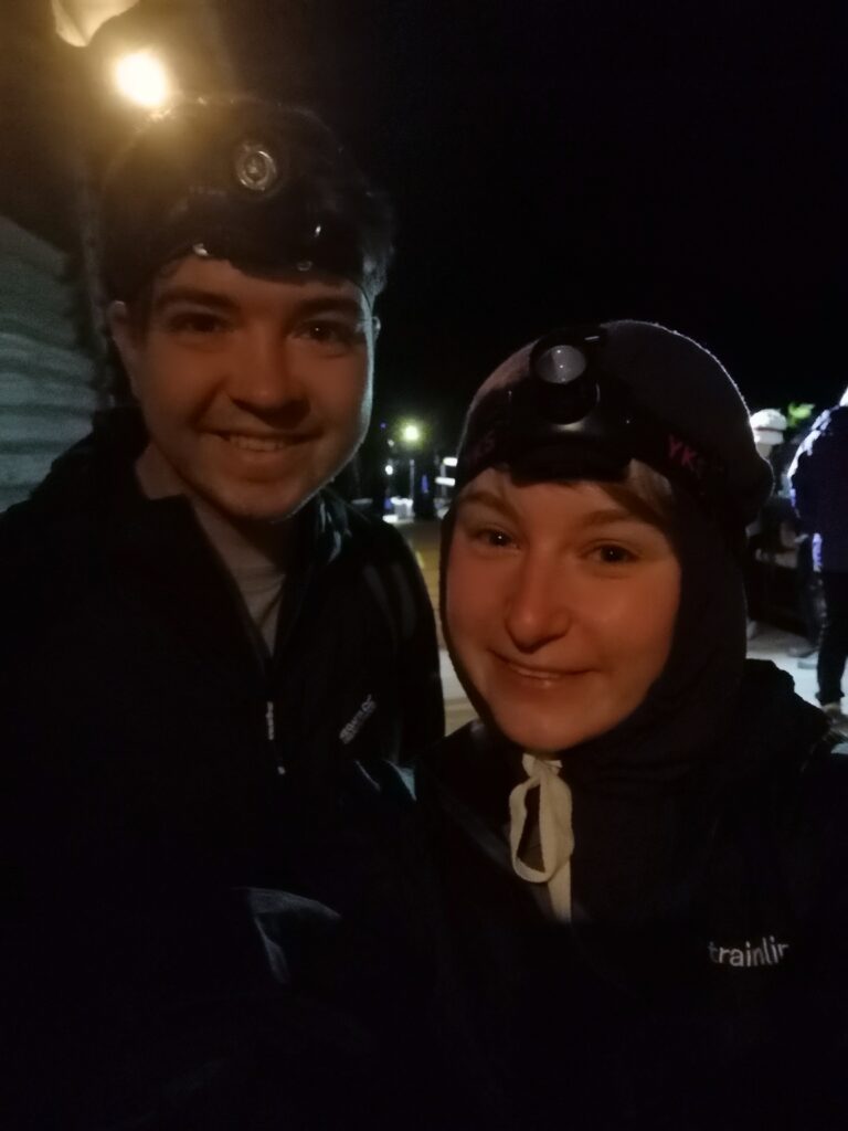 We’re starting our ascent. It’s pitch black, with headlamps being the only guidance.