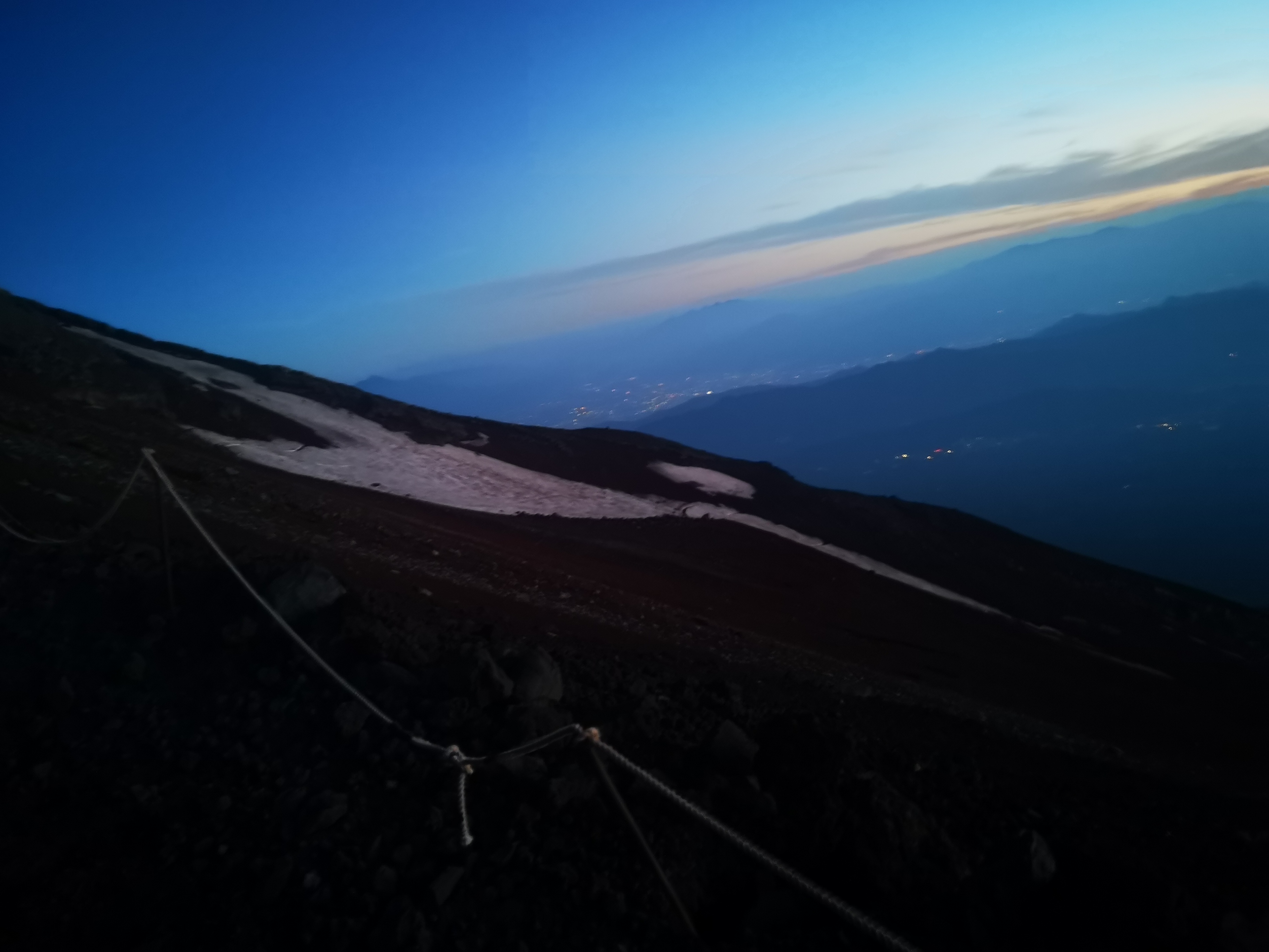 With the sun beating down so harshly, and no water, the view was hard to take in. Whilst climbing Mount Fuji, we encountered clouds, and, of course, the pitch blackness of 1am. And so, the view was short-lived in any instance. Yet seemed to stay the same forever…
