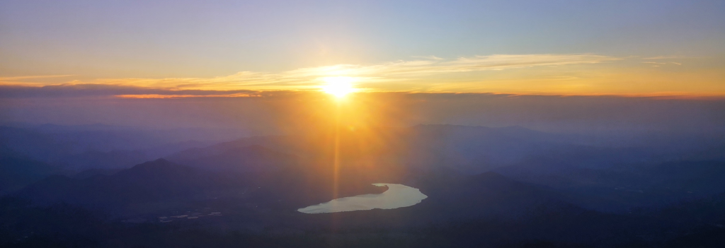 The sun breaks the horizon and dowses the valley in sunlight. We had spent a few minutes sitting down, as we were truly struggling by this point and weren’t sure we could make it. There was a large queue forming at what we could see to be the very top/summit. So, we stopped just shy of this last part, to watch the sunrise properly, and not trying to crick our necks while stood in a narrow-ledge queue.